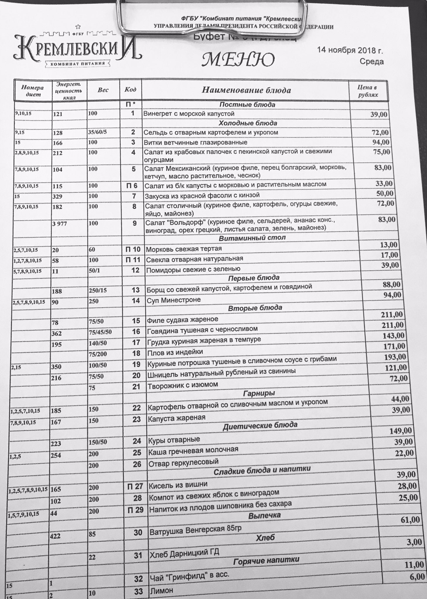 Меню в столовой утверждаться должно с подписью и печатью.Борис писал(а): ↑15 ноя 2018, 09:36Депутат Госдумы от Самарской области Александр Хинштейн развенчал миф о дешевых обедах в столовой нижней палаты парламента. Фотографию меню с ценами он опубликовал на своей странице в Twitter